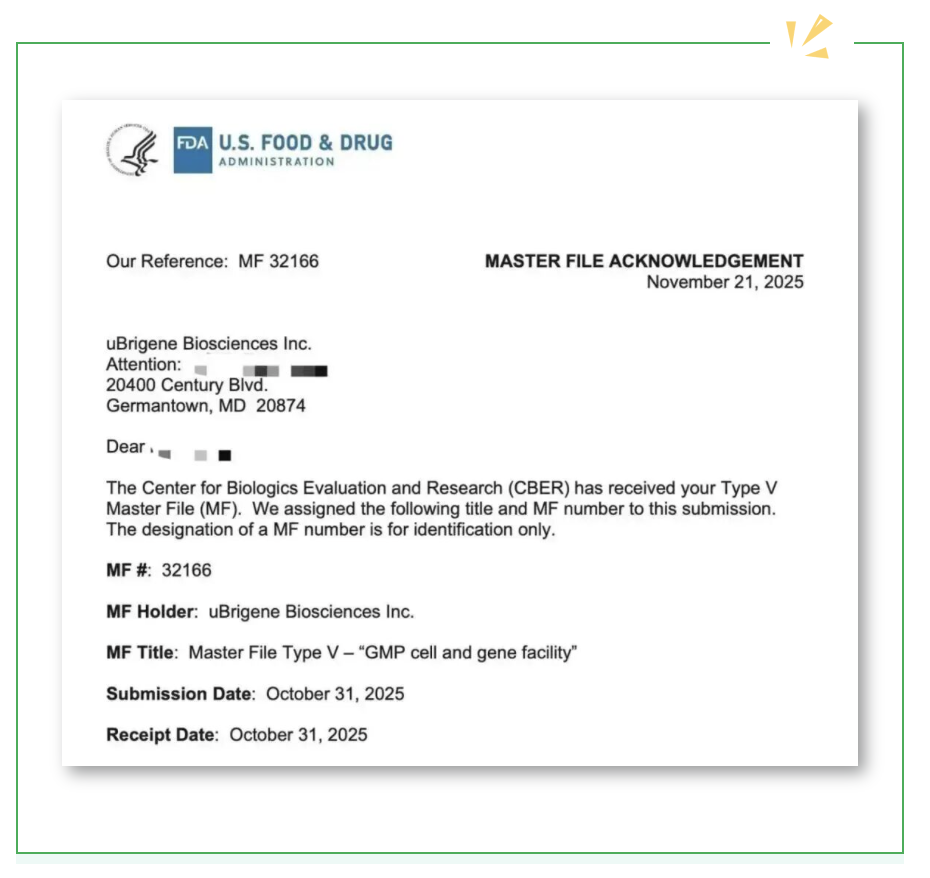 近日,宜明生物位于美国马里兰的细胞与基因治疗(CGT)GMP生产厂房完成美国FDA的DMF(Durg Master Files, 药品主文件)备案,并收到确认函,备案号为MF 32166。此举是宜明生物在构建国际化合规体系和强化全球供应链能力进程中的一项关键突破。