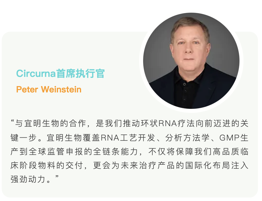 Circurna 的专有技术平台实现可编程环化、先进 RNA 工程和精准靶向递送,为传统 RNA 技术尚未覆盖的疾病打开了新的治疗空间。此次通过与宜明生物的合作,将进一步加速推进 Circurna 研发管线迈向首次人体临床试验,并构建可持续扩展的 CMC 体系以支持未来全球开发。