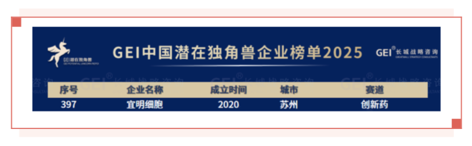 宜明生物凭借卓越的高成长性与创新实力,成功入选长城战略咨询发布的《GEI中国潜在独角兽企业研究报告2025》权威榜单。潜在独角兽企业作为独角兽企业的“后备军”,需满足成立年限不超过9年、获得私募投资且未上市,并达到相应估值标准等严格条件。宜明生物自2015年成立以来,已成功完成多轮融资,并建立了覆盖中国、北美的一站式CRDMO服务制造网络,展现出卓越的行业竞争力。此次入选,不仅是对宜明生物创新能力的认可,更是对其行业优势地位的双重肯定。