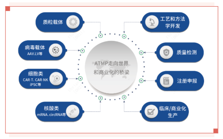 宜明生物建立了覆盖ATMP CRDMO全产业链的服务体系,集成四大核心工艺平台,以及工艺开发、质量检测、注册申报和商业化生产等全周期服务体系。